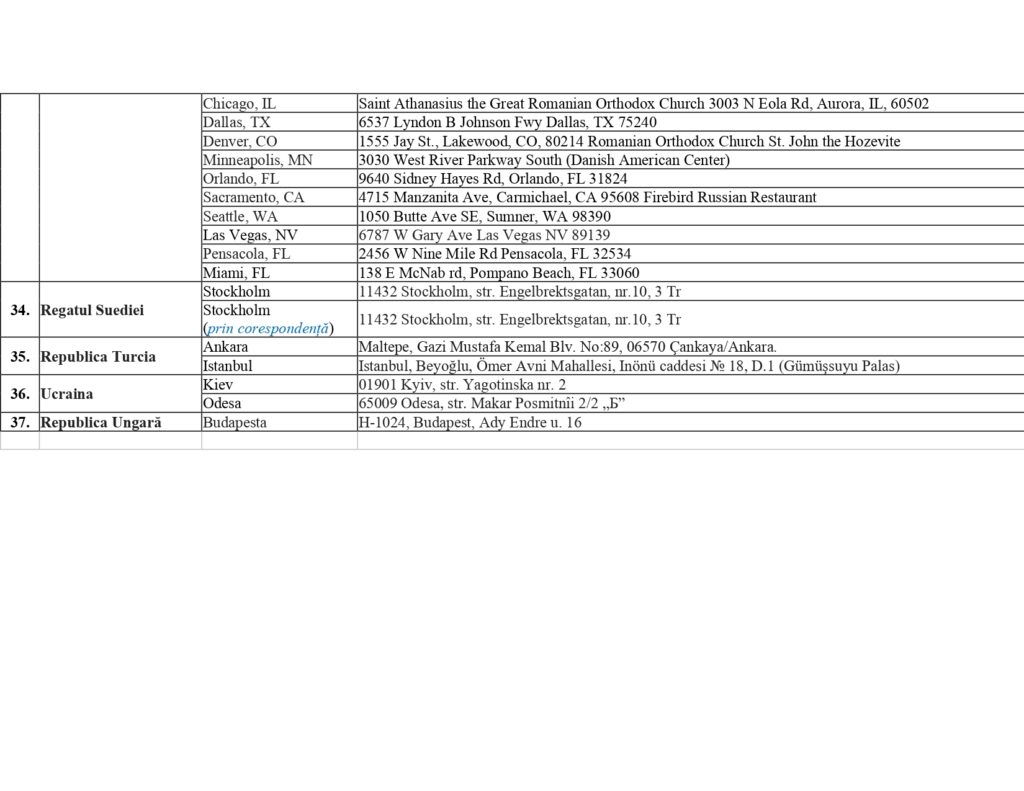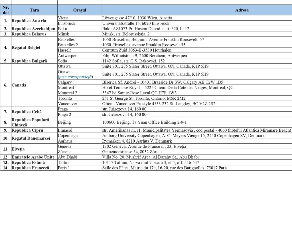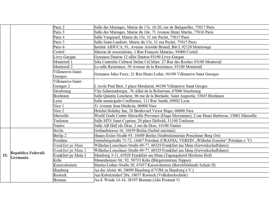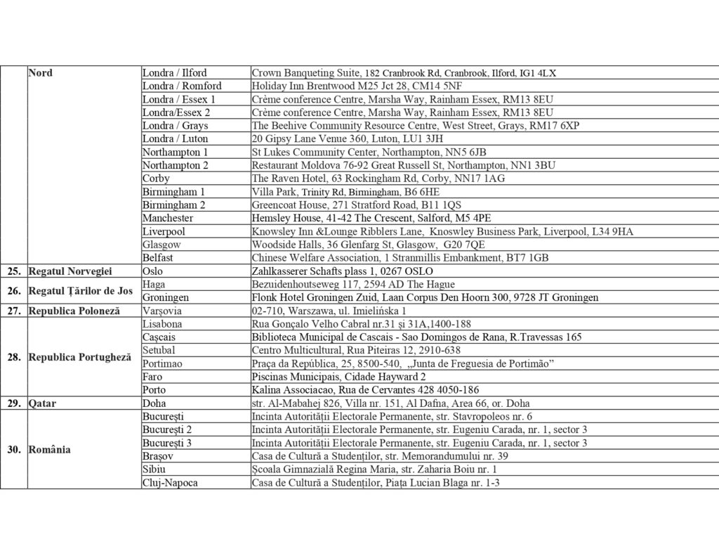 Центральная избирательная комиссия Республики Молдова представила список избирательных участков за рубежом на президентских выборах и Референдуме 2024 года. Они будут открыты в 37 странах, наибольшее число в Италии — 60, далее следует Германия — 26, Франция — 20, Румыния — 16. По одному избирательному участку будет открыто в 10 странах, по два — в 16, среди них Австория, Россия, Украина, Турция.